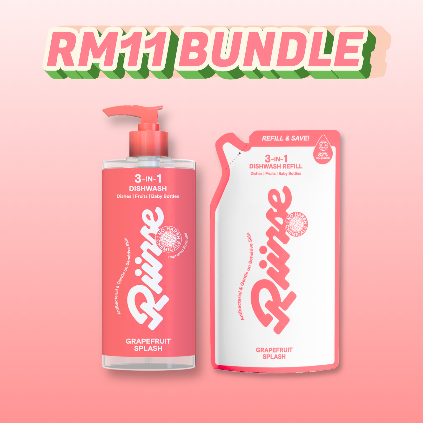 11.11 3-in-1 Dishwash Grapefruit Splash - 1 Bottle 600ml + 1 Refill 500ml